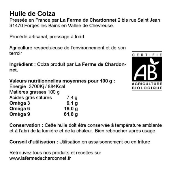 Huile de Colza de La Ferme de Chardonnet